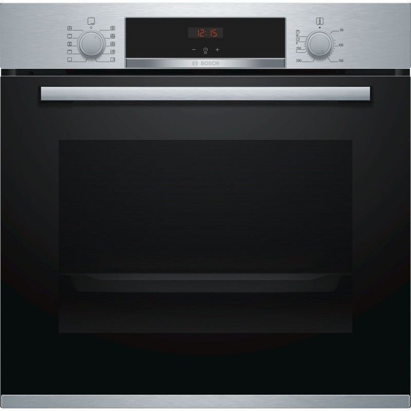 Vstavaná elektrická rúra Bosch HBA554BS0 s objemom 71l a 3D horúcim vzduchom pomáha dosiahnuť dokonalé výsledky pečenia na viacerých úrovniach súčasne. Zápustné otočné voliče zaručujú jednoduché čistenie a údržbu ovládacieho panelu, ovládanie dopĺňa LED displej s hodinami a časovou predvoľbou. Rúra ponúka 7 druhov ohrevu v teplotnom rozsahu 50 °C - 275 °C: horúci vzduch, horný/dolný ohrev, cirkulačný infra-gril, velkoplošný gril, stupeň na pizzu, dolný ohrev, horúci vzduch jemný. Ďaľšou dôležitou funkciou je detská poistka a samočistiaca funkcia EcoClean. Osvetlenie v rúre Bosch HBA554BS0 je halogénové. Dvierka rúry sú vybavené dizajnovým nerezovým madlom. Rúra je dodávaná s nasledovným príslušenstvom: smaltovaný plech, kombinovaný rošt, univerzálna panvica.