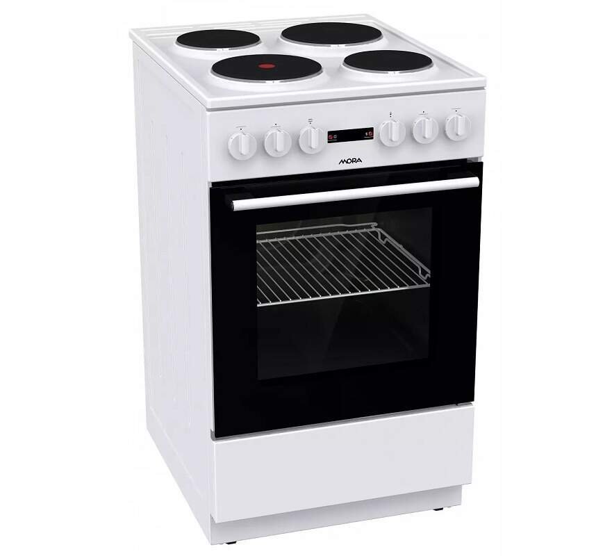 Elektrický sporák Mora E 2250 AW je vybavený elektrickou varnou doskou, ktorá disponuje 4 liatinovými platničkami Hi-Light. Predné platničky dosahujú priemer 18 a 14,5 cm a zadné platničky 14,5 a 18 cm.