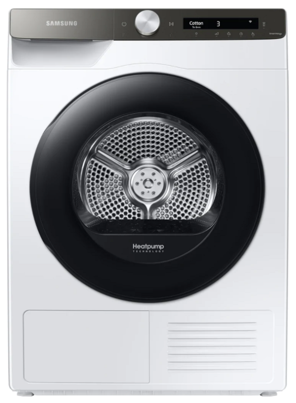 : SamsungSmart sušička bielizne Samsung DV90T5240AE/S7 v bielom prevedení s objemom bubna 9 kg je zaradená do energetickej triedy A+++. Rýchly program Quick Dry za 35 minút 1 kg oblečenia. Výkonné sušenie pomocou tepelného čerpadla a 3 senzorov Optimal Dry. Má filter 2v1 pre jednoduchú údržbu. Možnosť ovládania prostredníctvom Wi-Fi a aplikácie SmartThings a AI Control. Možno otvárania dvierok do oboch strán. Má aj ochranu voči pokrčeniu Wrinkle Prevent a detský zámok. Hlučnosť 63 dB. Rozmery (VxŠXH):85 x 60 x 60 cm.